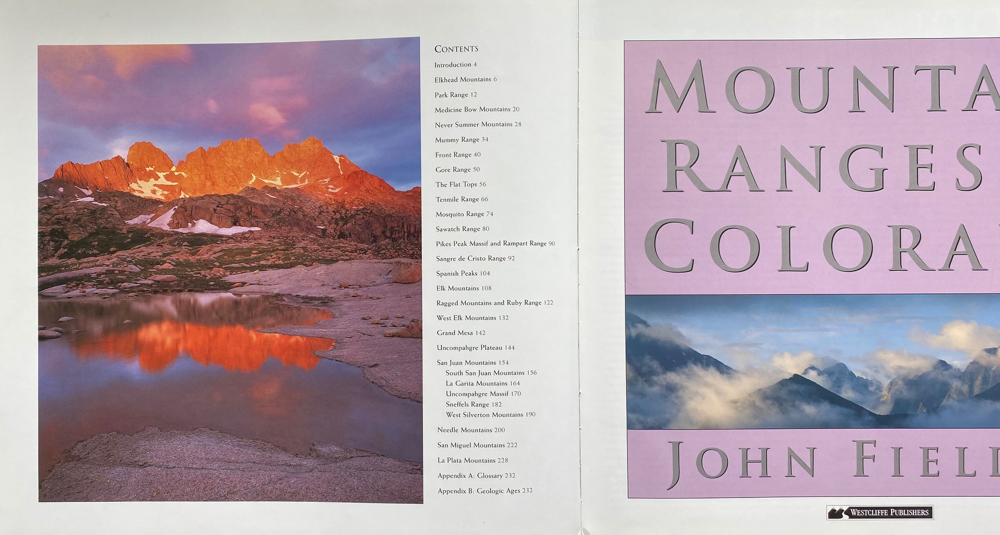 John Fielders best-selling 2004 book has been reprinted with a special introduction to celebrate the 50th anniversary of the Wilderness Act of 1964. No other Colorado coffee table book better depicts the mountains of Colorado, and is neatly organized by the 28 distinct Colorado mountain ranges. John backpacked and llama-packed from 1984 to 2003 into the most remote parts of the Colorado Rocky Mountains with his 65 pounds of large format camera gear. These mountains represent the heart of Colorado wilderness. The book includes text about the geological origins of each range. A collectors item for sure!